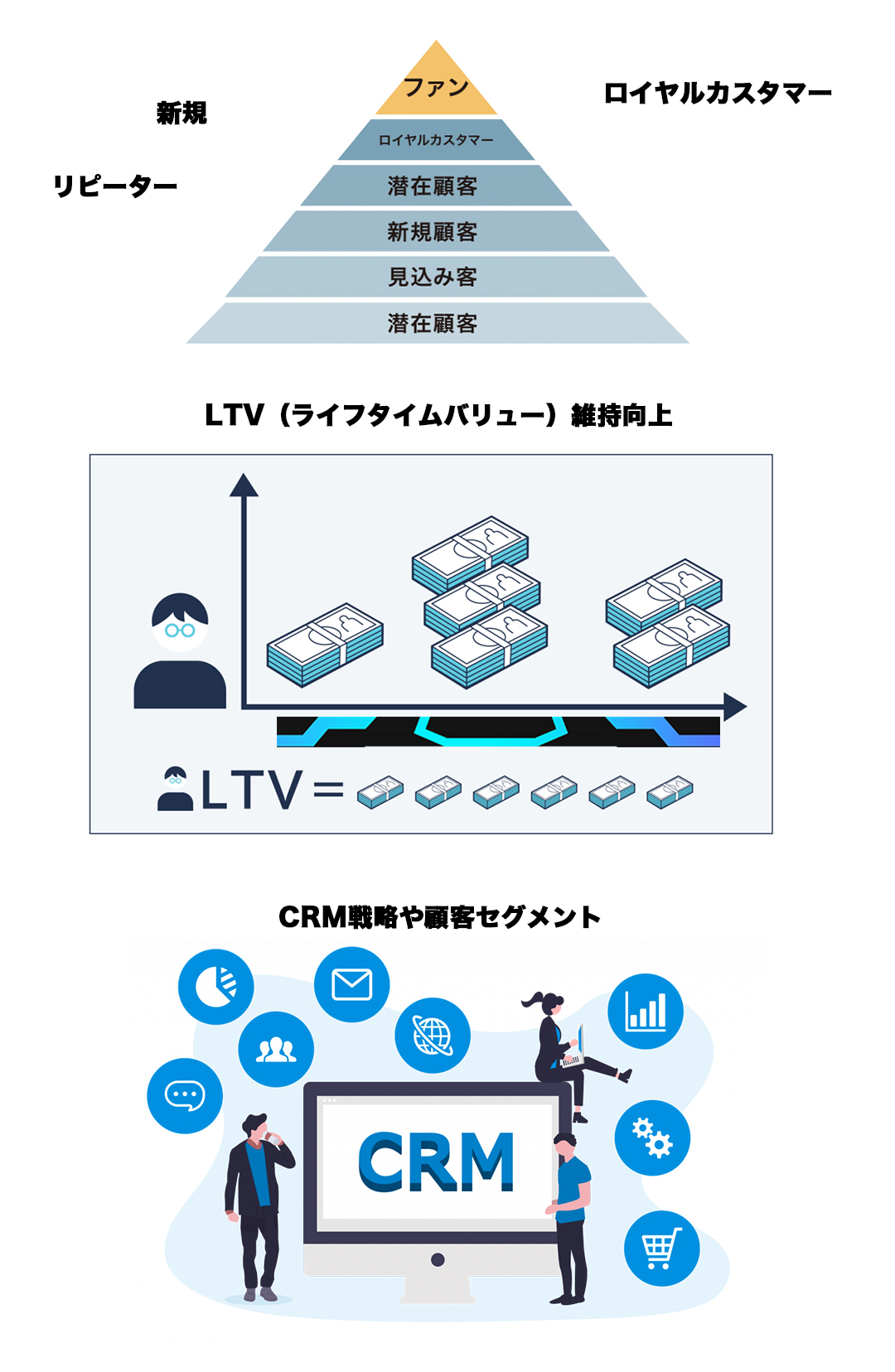 グーグルアナリティクス、HUBSPOTやカルテなど様々なCRMツールがあり、それを駆使し、導線を整えたのち、適切に訴求を行う。