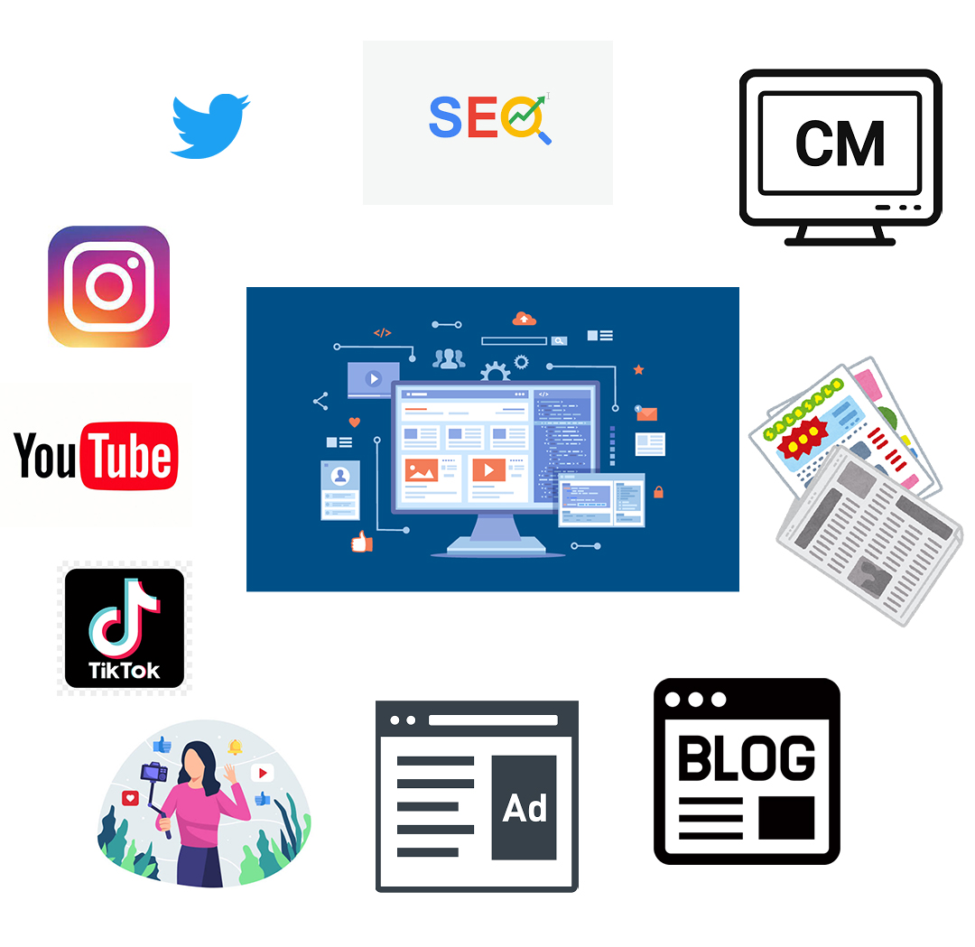 導線の構築は上記のSNS、広告、SEO、他サイト、TV、紙媒体などあらゆる手法を用いる