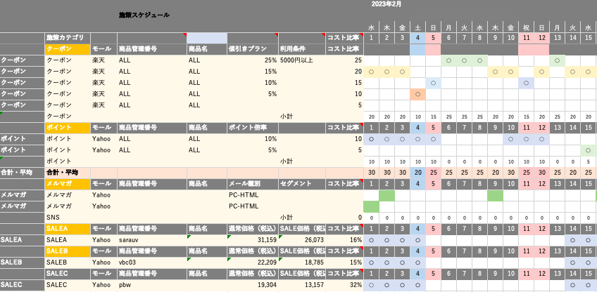 自社サイト、楽天、ヤフーなど特性に合わせ販促スケジュールを作成致します。