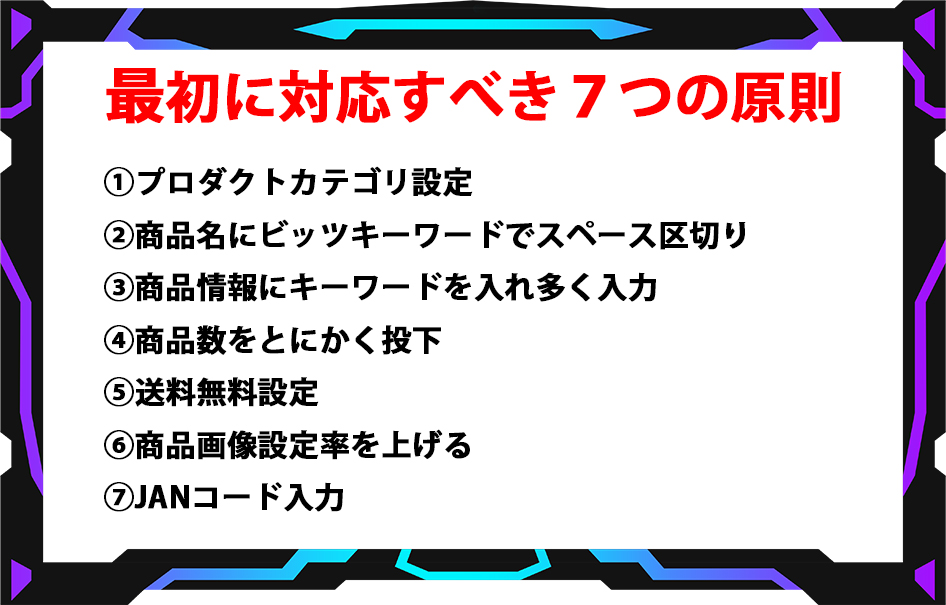 商品名・キーワード・商品文にも下記のずを意識しSEO対策を行いましょう